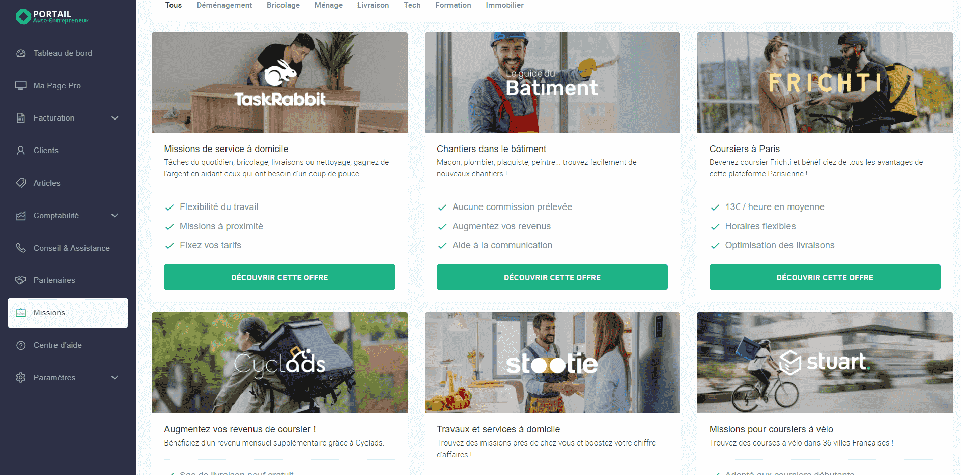 Mon Portail pour 19,90 € par mois : logiciel de facturation et de gestion complet, page internet professionnelle pour votre micro-entreprise, assistants virtuels en usage illimité, etc.