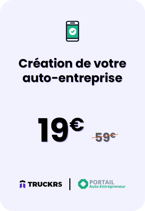 Grâce à notre partenariat avec Truckrs, vous bénéficiez d'une offre spéciale pour la création de votre auto-entreprise. Nous vous accompagnons pas-à-pas jusqu'à l'obtention de votre numéro SIRET. Une fois obtenu, vous pourrez enfin commencer vos missions avec Truckrs !